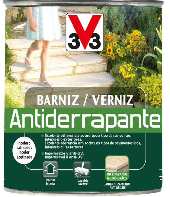 O Verniz Antiderrapante para Chão Incolor 2,5L da V33 foi especialmente desenvolvido para proteger pavimentos, garantindo maior segurança graças ao seu efeito antiderrapante. A sua fórmula incolor preserva o aspeto original do material, sendo ideal para quem pretende proteção sem alterar a estética do chão.